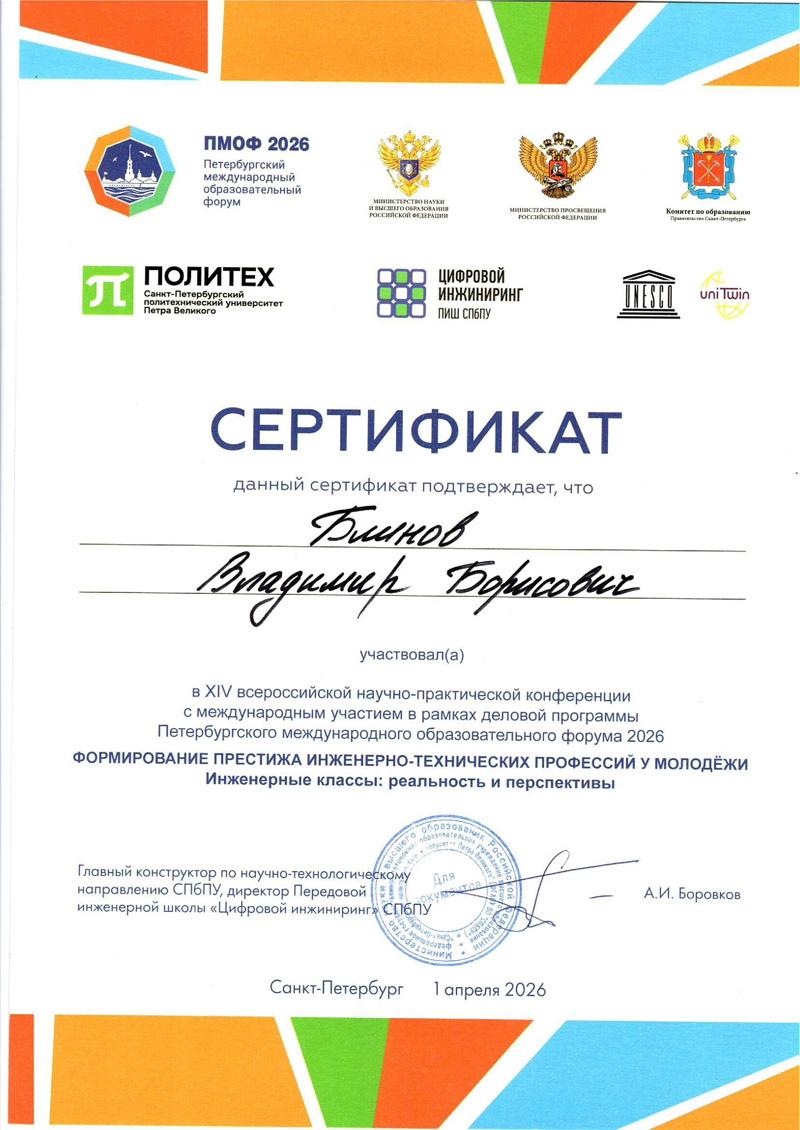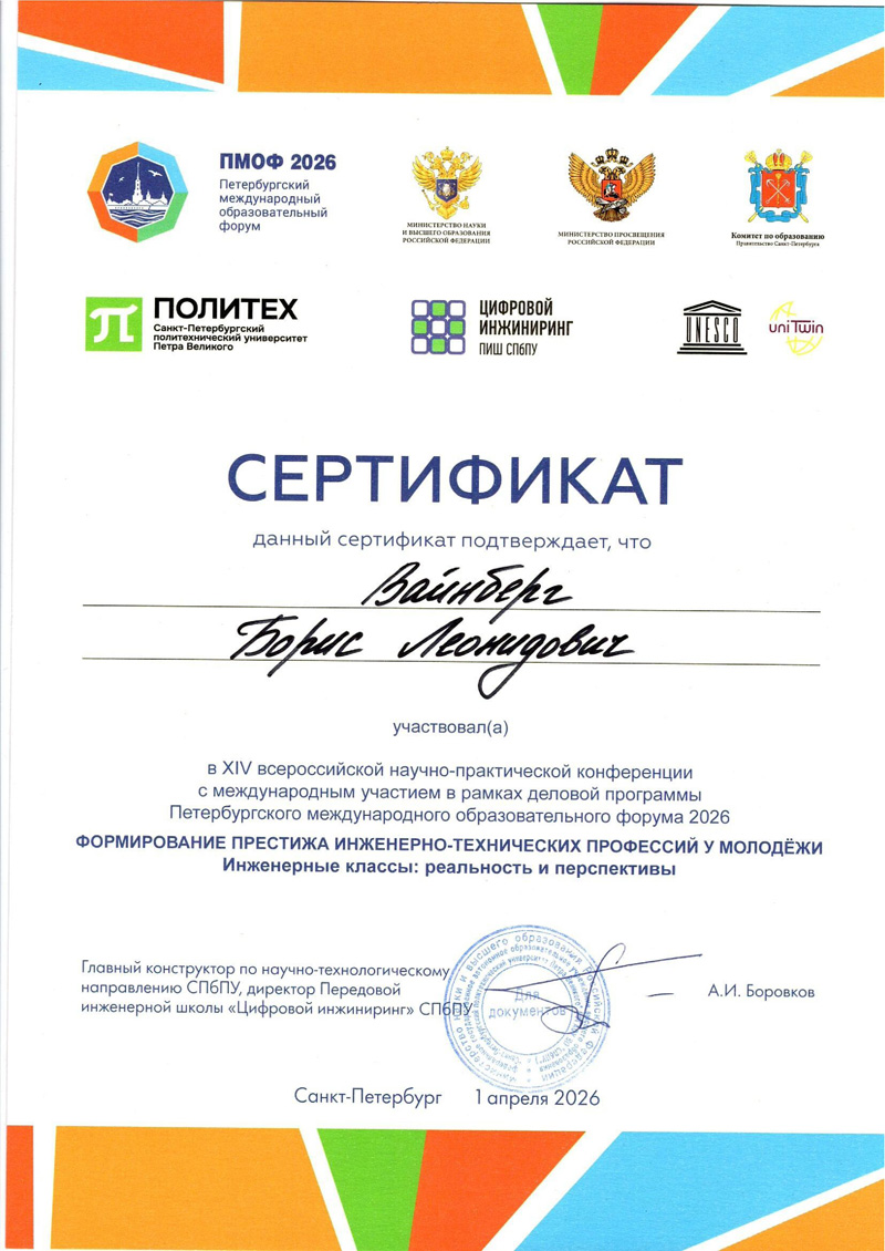 1 апреля 2026 года в рамках XVI Петербургского международного образовательного форума на базе Санкт-Петербургского политехнического университета Петра Великого работала диалоговая площадка «Инженерные классы: реальность и перспективы»